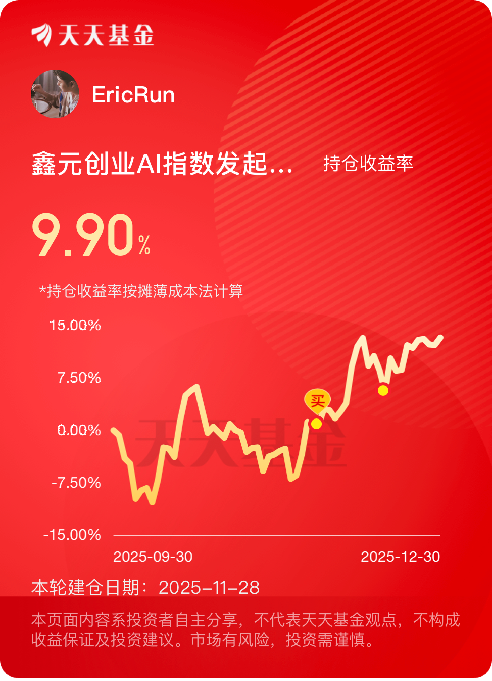 最近的市场是真不错啊,继续看好科技是后面的市场主线,再加点$鑫元创业AI指数发起式C$ #晒收益#
