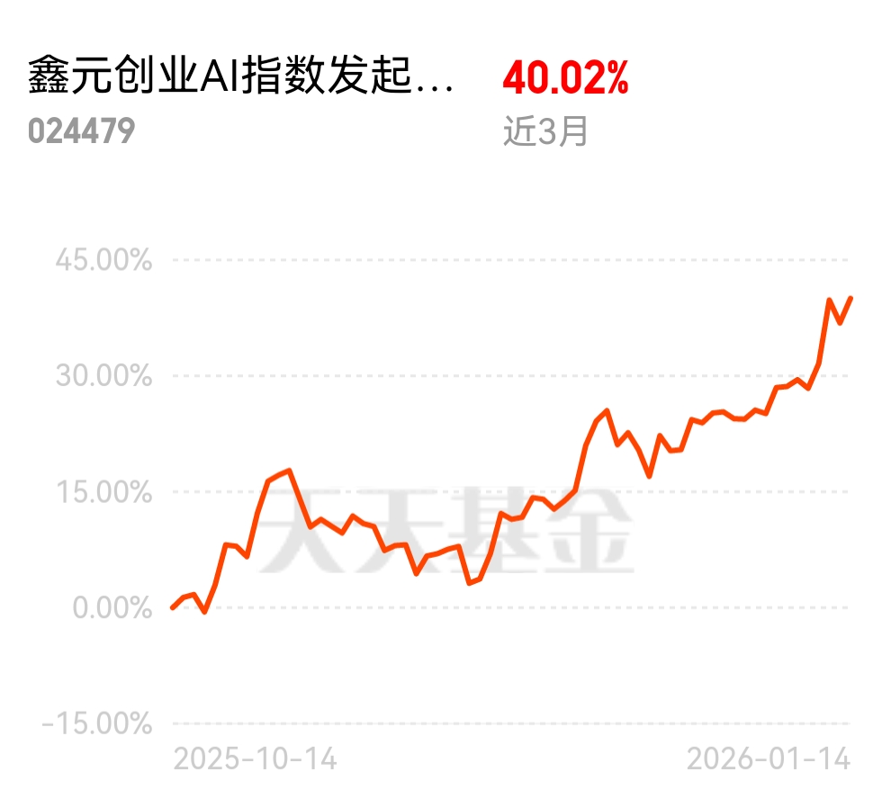 $鑫元创业AI指数发起式C$零申购费!锚定AI硬核赛道,近3月涨超40%,单日劲
