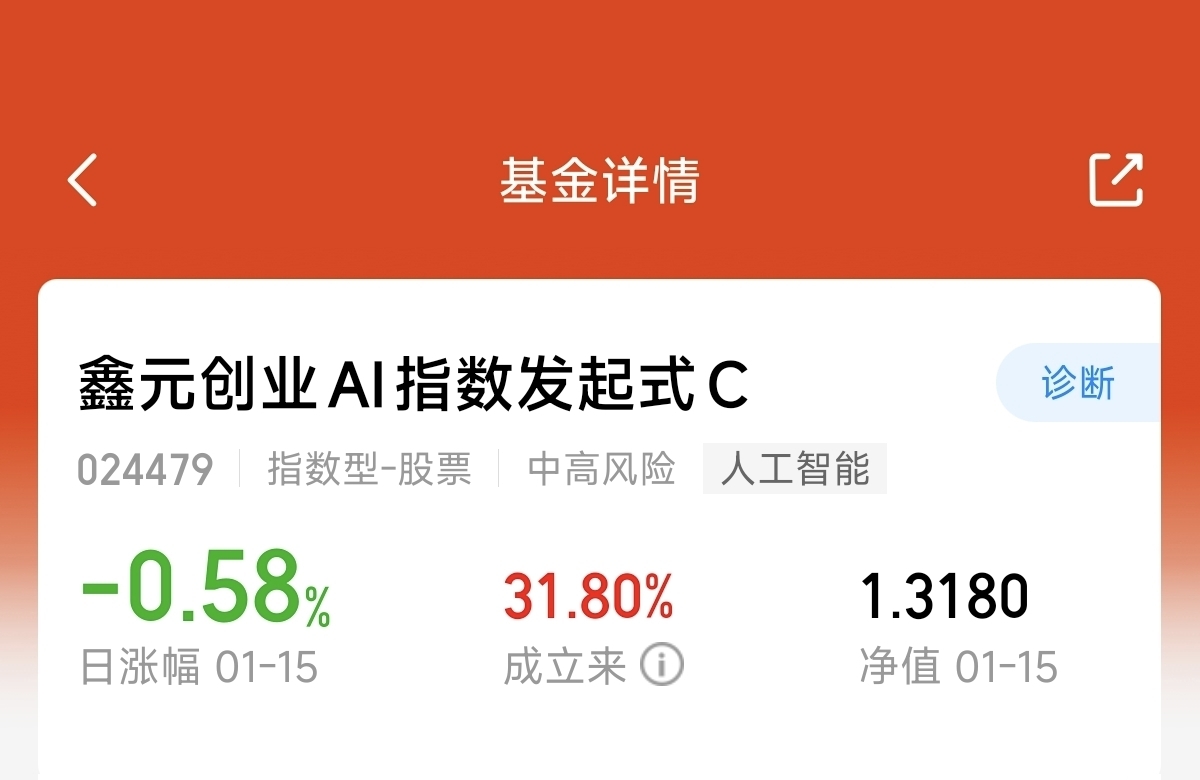 发起式指数基来啦!聚焦创业板AI全产业链,短期爆发力足,长期趋势清晰,轻松布局科技风口~$鑫元创业AI指数发起式C$ 今晚小跌0.58%