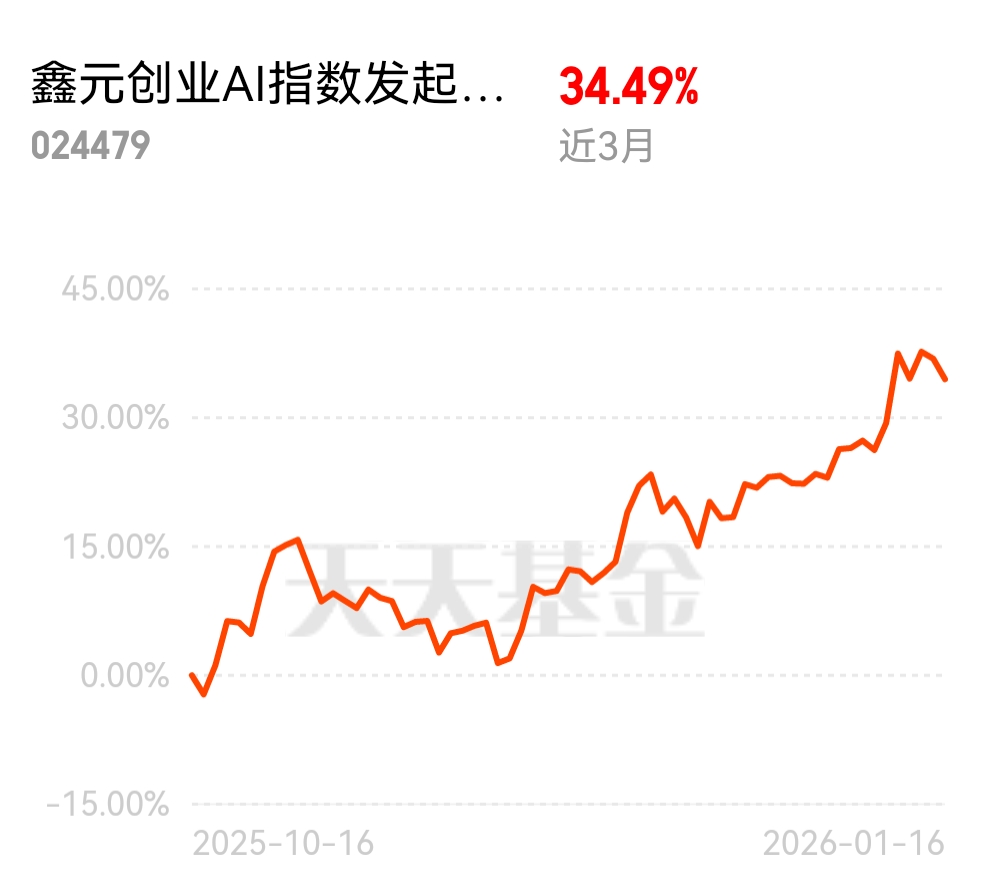 $鑫元创业AI指数发起式C$ 太靠谱!近3月涨超34%,精准踩中AI风口,能涨抗波动