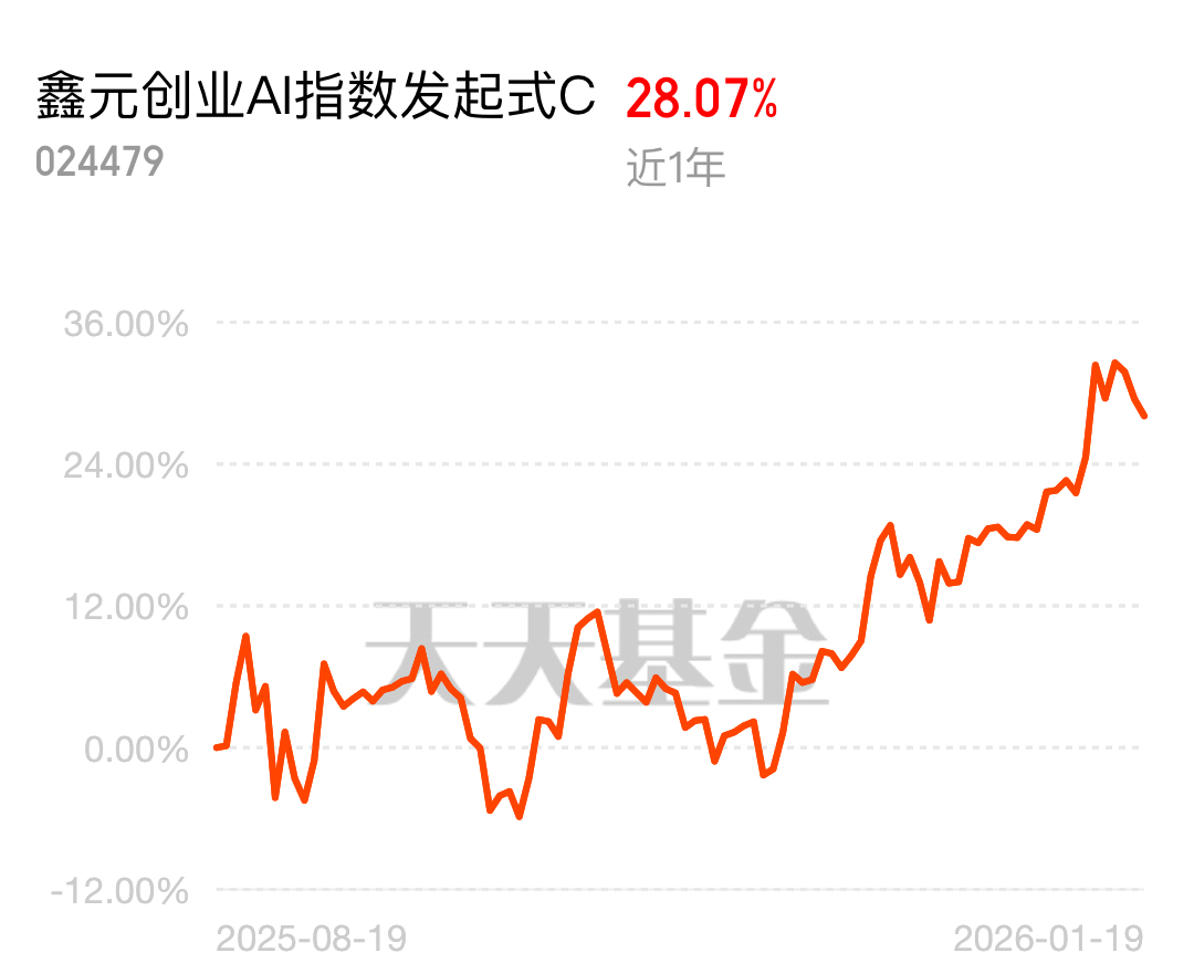 $鑫元创业AI指数发起式C$净值1.2807,单日小幅回调1.10%,但近12个