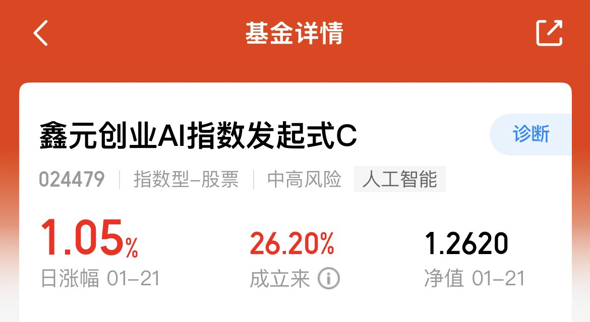 创业板AI潜力拉满!$鑫元创业AI指数发起式C$近3月大涨超23.27%,精准捕