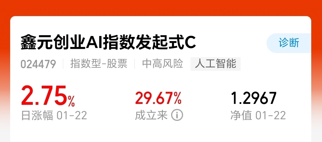 AI赛道又爆了!$鑫元创业AI指数发起式C$今日大涨2.75%,成立来累计29.