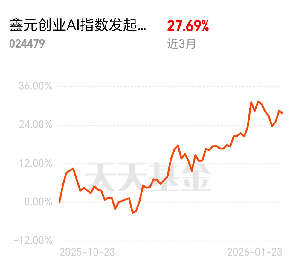 别被短期波动影响!$鑫元创业AI指数发起式C$近3月+27.69%,聚焦AI硬件