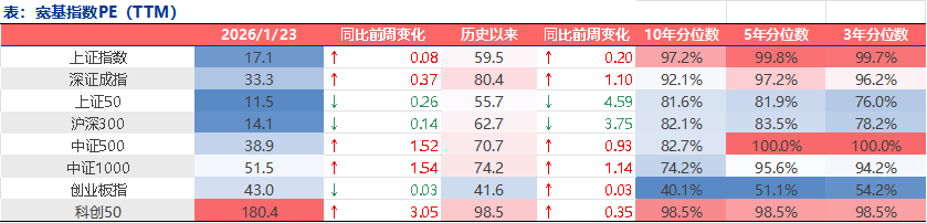 表1:上周A股市场宽基指数PE(TTM)