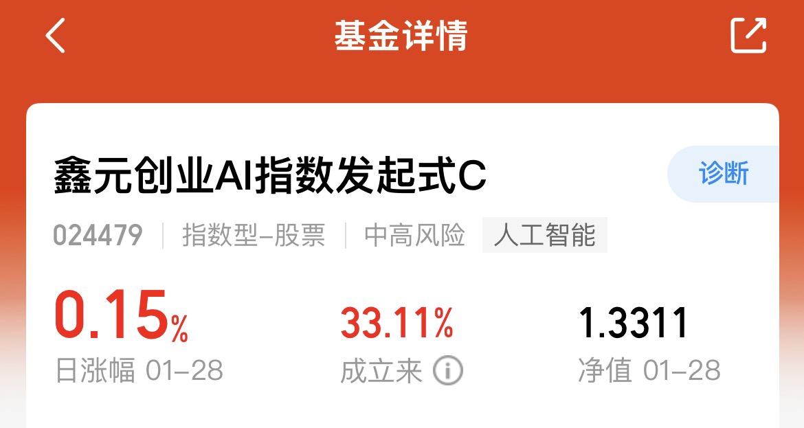 鑫元创业AI指数C单日涨0.15%,近三月涨幅超20.01%,AI赛道势头拉满