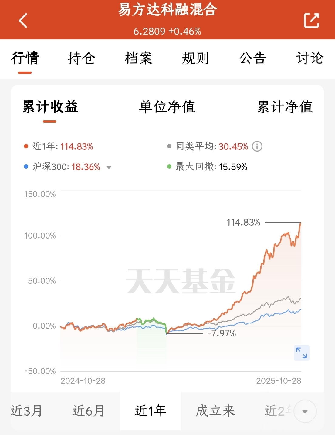 当下科技板块震荡加剧,配置单一领域风险偏高。$易方达科融混合$ 在此结构性行情下,均衡分散覆盖科技、新能源、军工等板块,有效降低组合波动。其严控回撤、业绩稳健的特性,适合风险敏感却又希望把握科技红利的长期小伙伴。在当前轮动频繁的市场环境下,不失为攻守兼备的选择。
