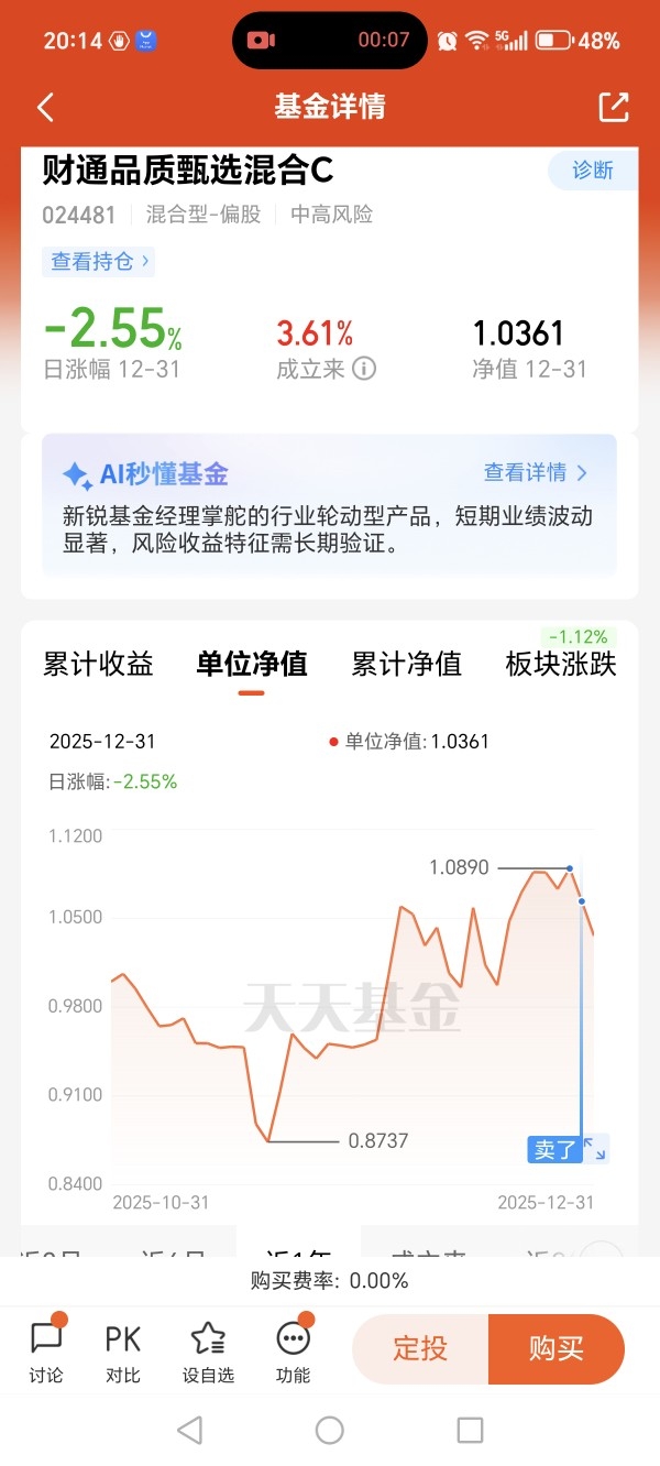 $财通品质甄选混合C[024481]$