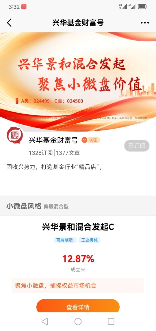 再经过以上认真的思考之后,我不但目前持有兴华景和混合发起A(024499)而且同时也做好了在未来对它继续加仓的投资计划了,因为我相信它可以带给投资者稳稳的幸福。@兴华基金