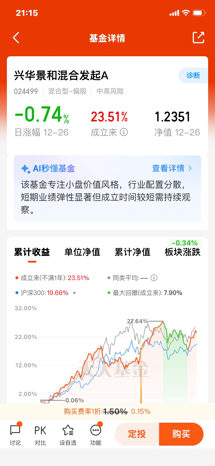 在明确了小微盘价值股领域的投资逻辑与当前态势后,如何具体参与就成了下一个问题。直接投资个股对个人投资者的研究能力、时间精力和风险承受能力要求极高。因此,借助专业的公募基金产品是更务实的选择。而在我对市场上诸多聚焦小微盘策略的基金进行梳理后,兴华景和混合发起(A类:024499)进入了我的核心观察池,并最终成为我配置的一部分。我认为其投资机会主要体现在以下几个方面: