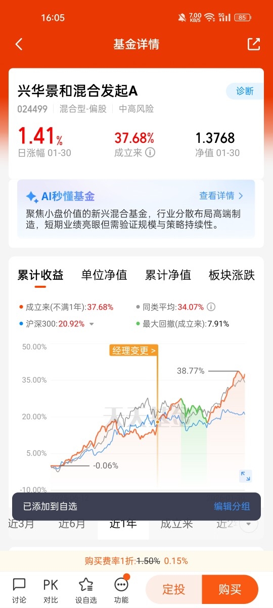 我对$兴华景和混合发起A$颇为满意。该基金采用"基本面量化+主动管理"的双轮驱动
