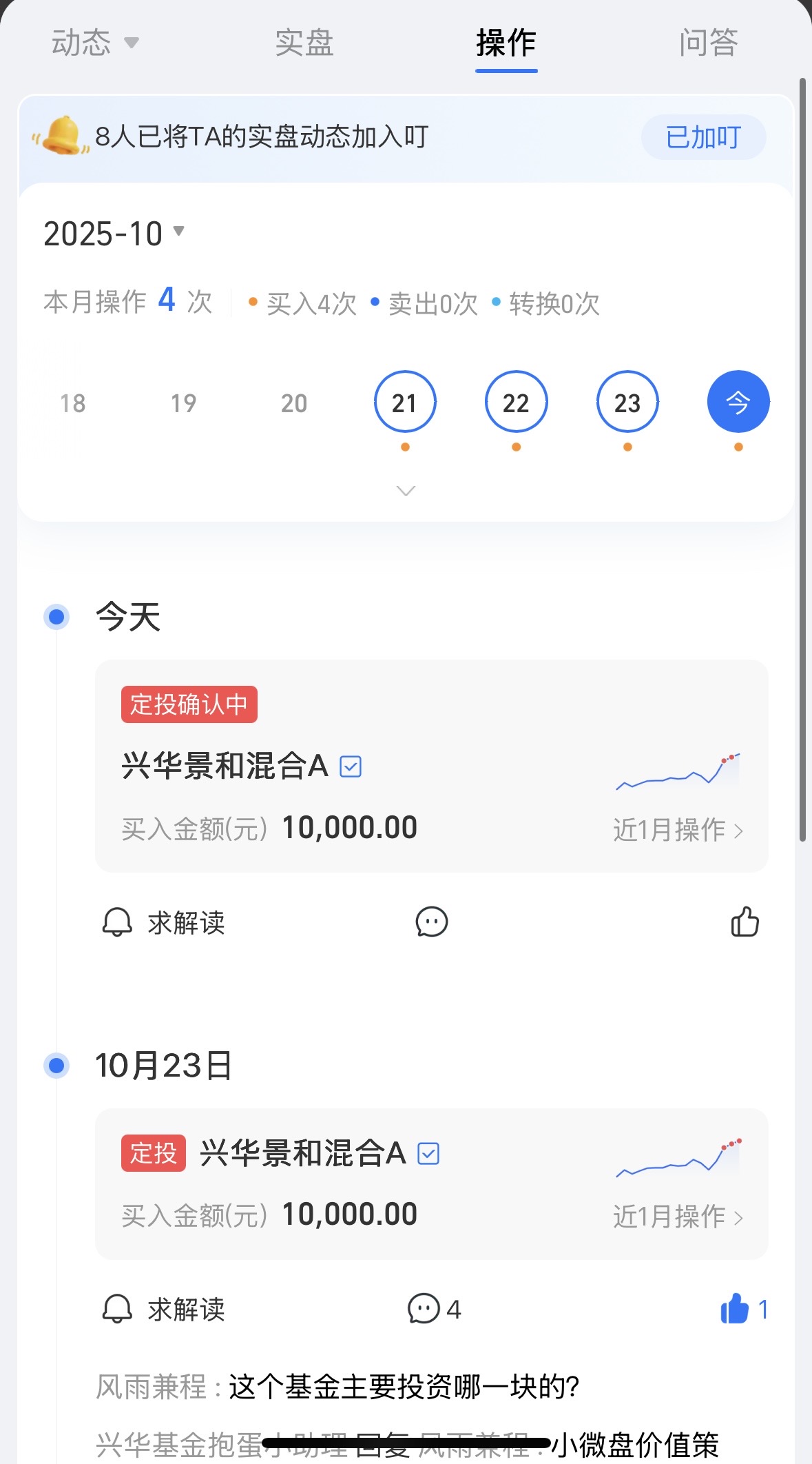 今天继续坚持定投加仓兴华景和A 10000元,从今日盘中数据来看,小微盘股行情实现连涨,定投账户再度迎来“开门红”,市场近期的表现也印证之前的观点“四季度市场风格或趋向均衡,部分资金可能从高度集中的领域流向低估值、小市值板块,带动风格再平衡。其中,那些基本面扎实、前期涨幅有限、估值合理,并符合产业政策方向、拥有技术优势但尚未被充分定价的小市值公司,有望迎来较好的配置机会与估值修复空间”。