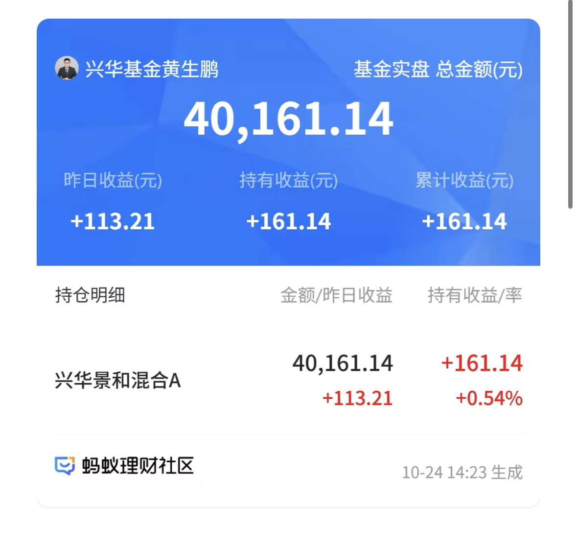 兴华景和的基金经理黄生鹏每日14:30左右将更新作,欢迎大家关注~