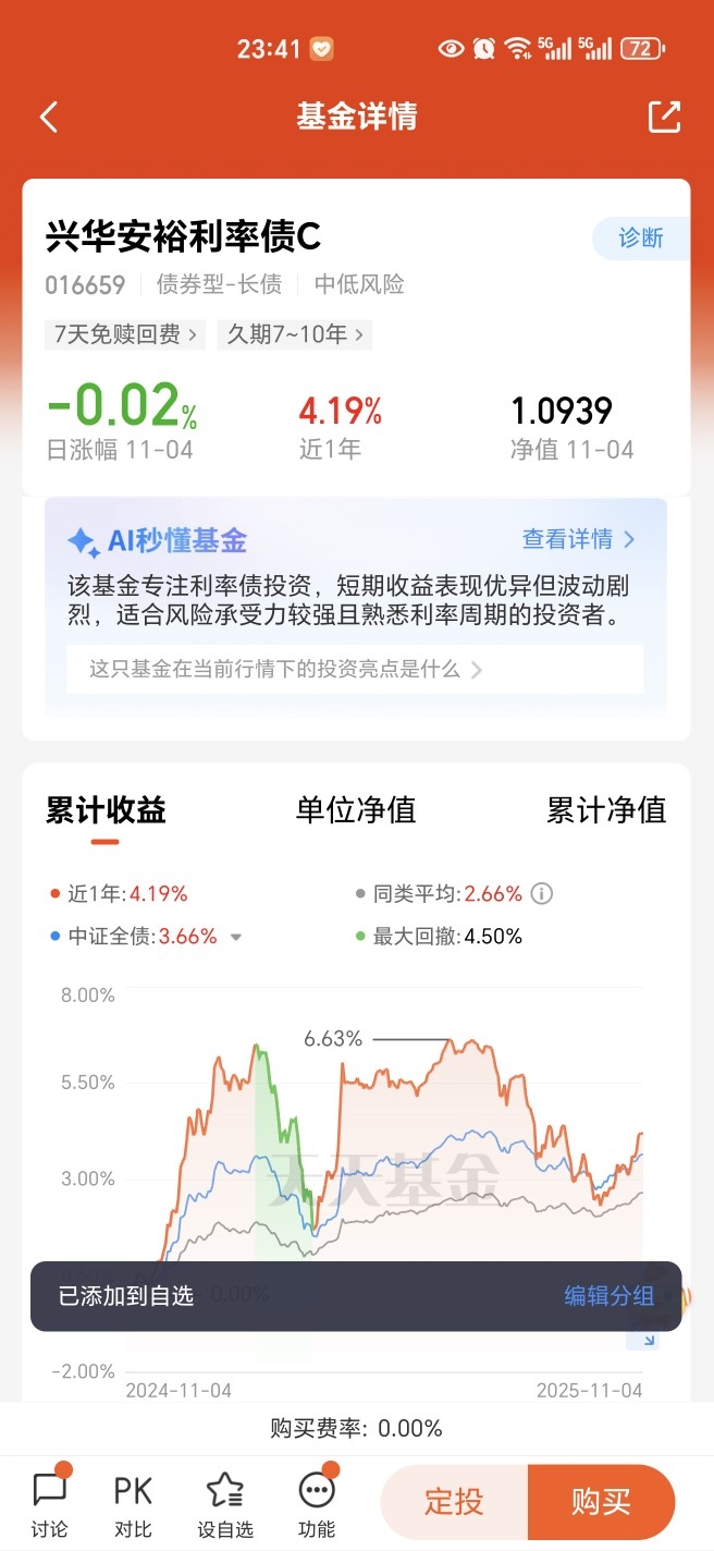 1. 费率设计灵活,交易成本极低 :该份额无申购费,持有超30天赎回费也为0,仅需支付年化0.4%的销售服务费,特别适配短期交易或频繁调整持仓的投资者,能避免高额申赎费限制操作。相比A类份额,短期持有(<1年)选择它成本优势明显,不用为短期调仓付出额外费用,资金进出更自由。