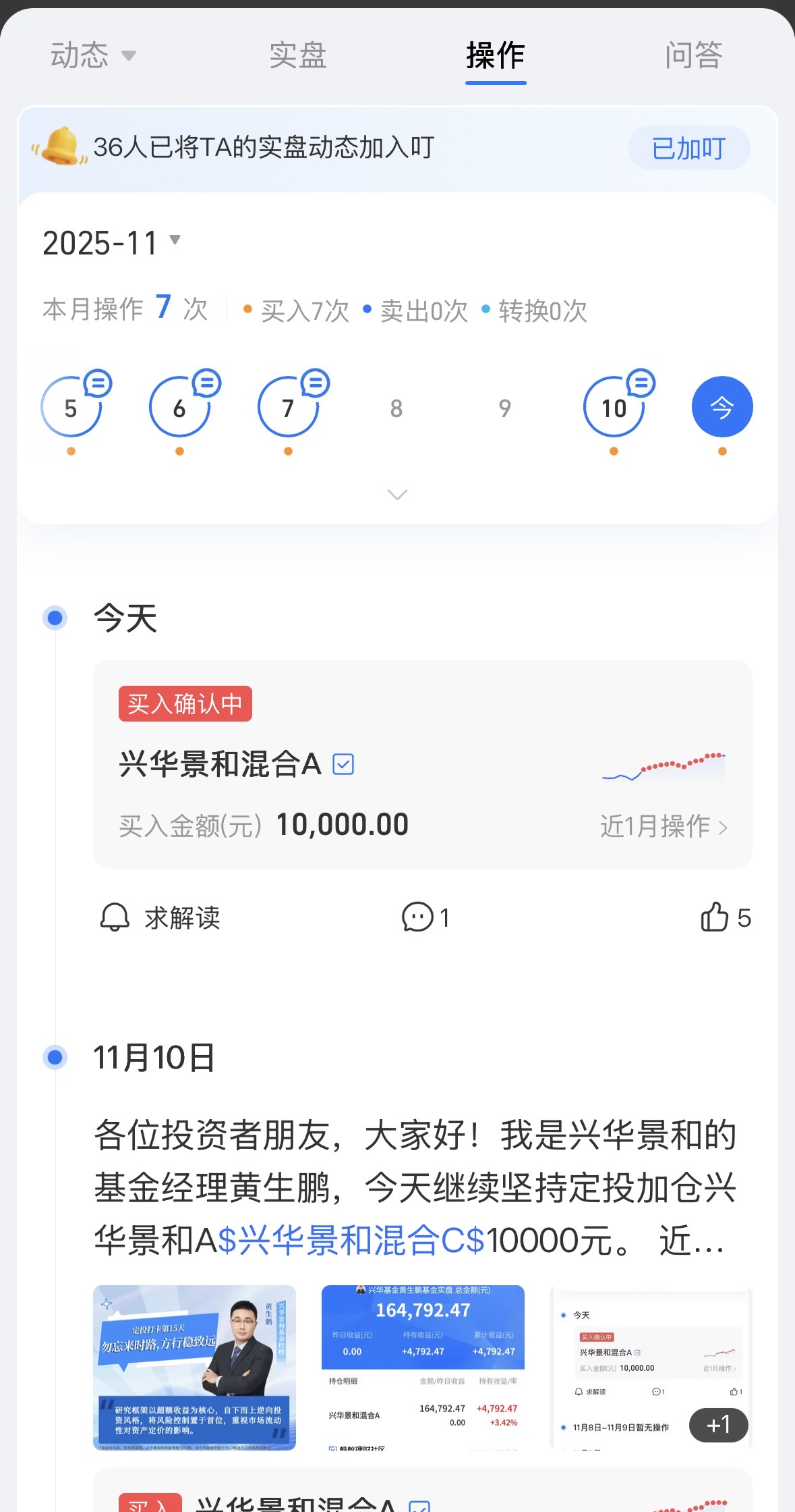 今天继续坚持定投加仓兴华景和A10000元$兴华景和混合发起A(OTCFUND|024499)$,市场越是昂扬,越需以定投的定力面对。今日已经是坚持定投的第16天,并非追逐趋势的盲从,而是在喧嚣中践行长期主义的笃定,不为短期收获,只为长期成长。