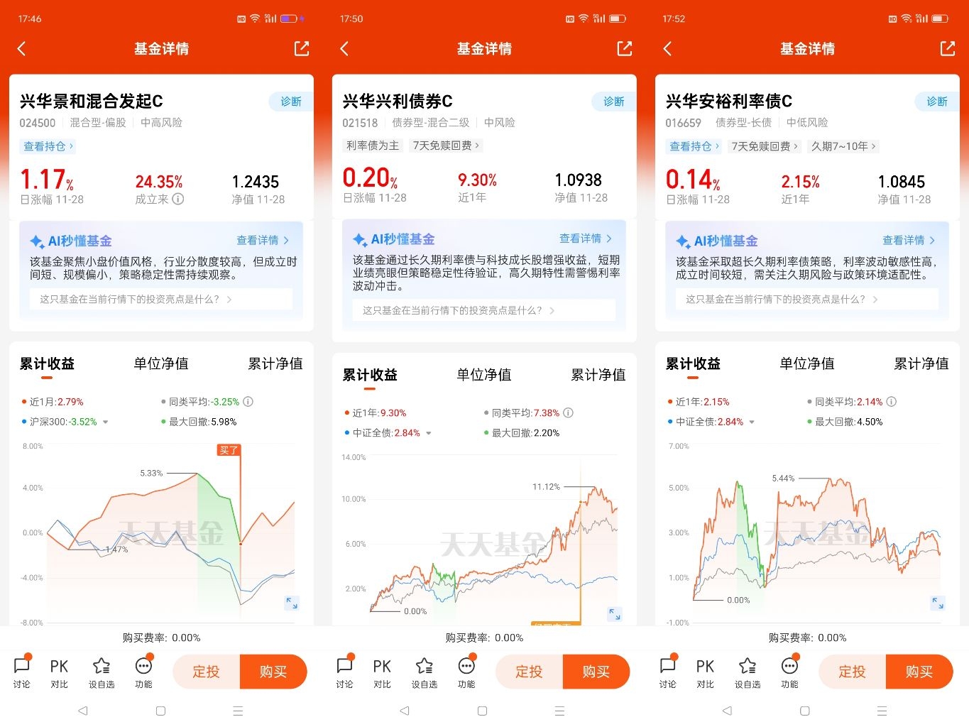 #日定投VS周定投,你更Pick哪一个?# 我pick周定投,我是兴华基金的忠实粉丝,长期定投持有$兴华安裕利率债C$ $兴华安启纯债C$ $兴华景和混合发起C$ 等多个基金,对收益回报和持有体验感到非常满意!我会继续配置兴华基金的产品,坚持定投,坚定持有!