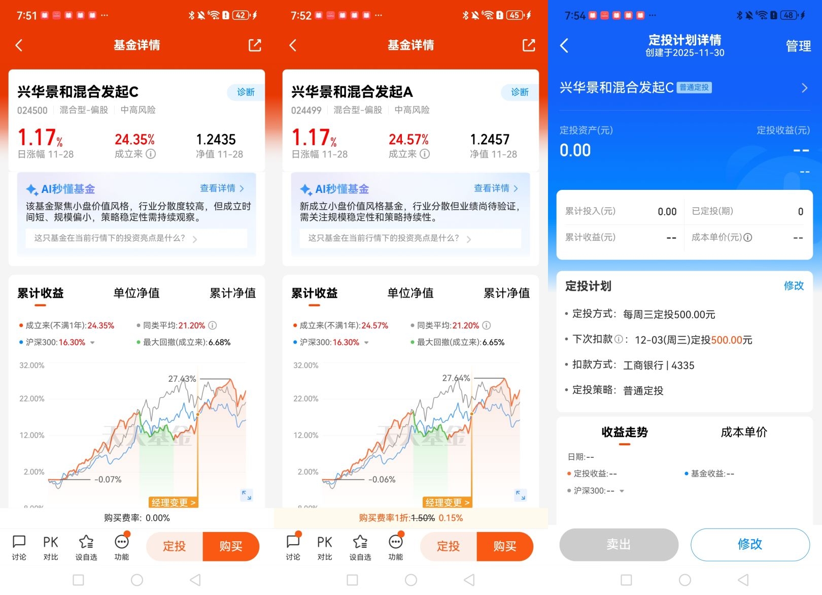 二、周定投兴华景和收益稳。现在基金众多,收益各异,即使同类基金收益也千差万别,我感觉收益率高低关键在于基金管理人。我认为周定投选择波动率大些的优质基金才是核心,方能更好发挥定投的优势,选择$兴华景和混合发起C$ 周定投就不错:一是该基金采用发起形式,管理人与基民利益捆绑,风险共担,利益共享,增强了管理人的责任感,提升了基民的信任度。二是管理团队投研实力强,风险控制严,管理风格稳。该基金成立不到半年,取得了超过24%的收益率,名列优秀,持有人获得感很强!三是$兴华景和混合发起C$ 适合周定投。从持仓股票看,该基金投资行业比较分散,净值波动小,回撤少,很稳健,避免了投资行业过度集中净值大幅波动的风险,但又有一定的波动率,能发挥定投优点,增加定投收益,体现定投平滑波动、分散风险和增强收益特性。因此,趁股市震荡调整之际,利用兴华基金公司发放的定投券和抵扣券,周定投$兴华景和混合发起C$ 是靠谱的,值得的。投资贵在坚持,只有坚守定投计划,就能静待定投花开!