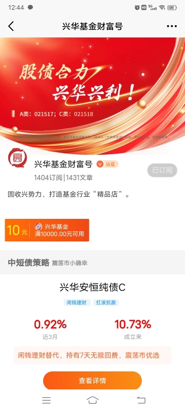 在这样的市场判断下,我将目光聚焦到了$兴华景和混合发起C$ ,并计划通过定投的方式布局这只基金。$兴华景和混合发起C$ 是一只专注小微盘价值股投资的混合型基金,成立来取得了24.17%的收益,12月25日单日涨幅也达到1.07%,短期业绩表现亮眼。这只基金的核心投资逻辑是通过逆向投资挖掘市场中的超额收益,恰好契合我对2026年结构性行情的判断——小微盘股中往往藏着未被市场充分挖掘的优质标的,逆向投资思路也能避开热门赛道的拥挤交易,在细分领域找到投资机会。