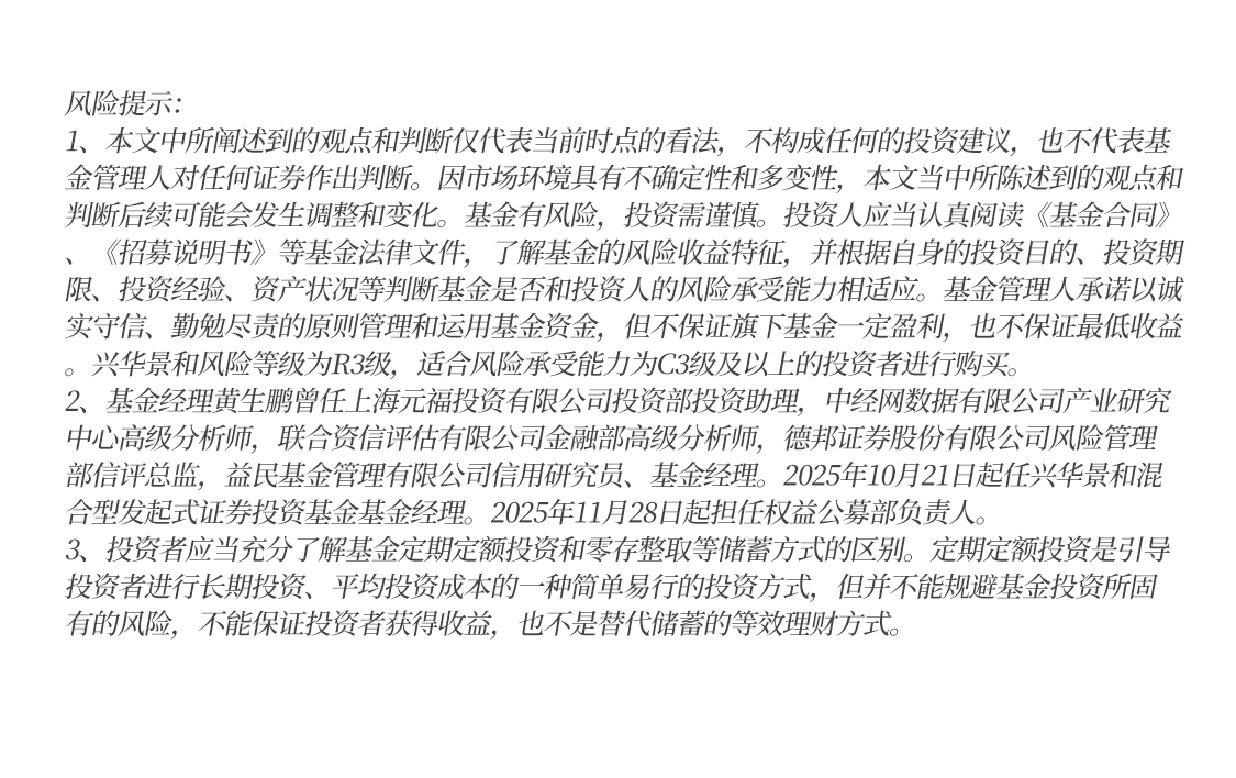 兴华景和聚焦小微盘价值股,我们将延续对中小市值公司研究的高强度,重点挖掘那些符合产业趋势(如高端制造、专精特新)、基本面出现改善且估值相对合理的标的,力争给大家带来长期可持续的良好回报。