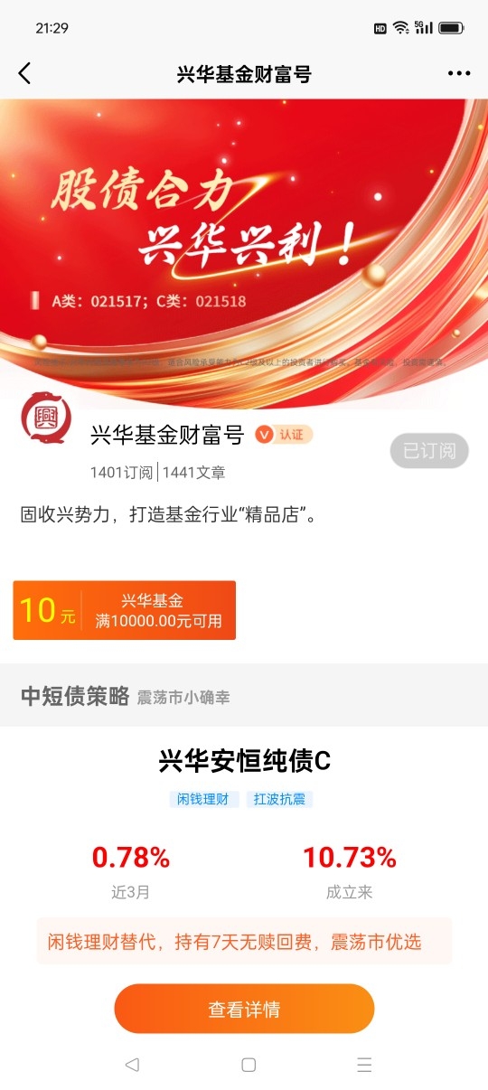 #晒2025收益,启2026新程!# 分享我的持基心得:我是兴华基金的忠实粉丝,长期定投持有$兴华景和混合发起C$$兴华安启纯债C$ $兴华安裕利率债C$ 等多只基金产品,对收益回报和持有体验感到非常满意!我会继续配置兴华基金的产品,坚持定投,传坚定持有!