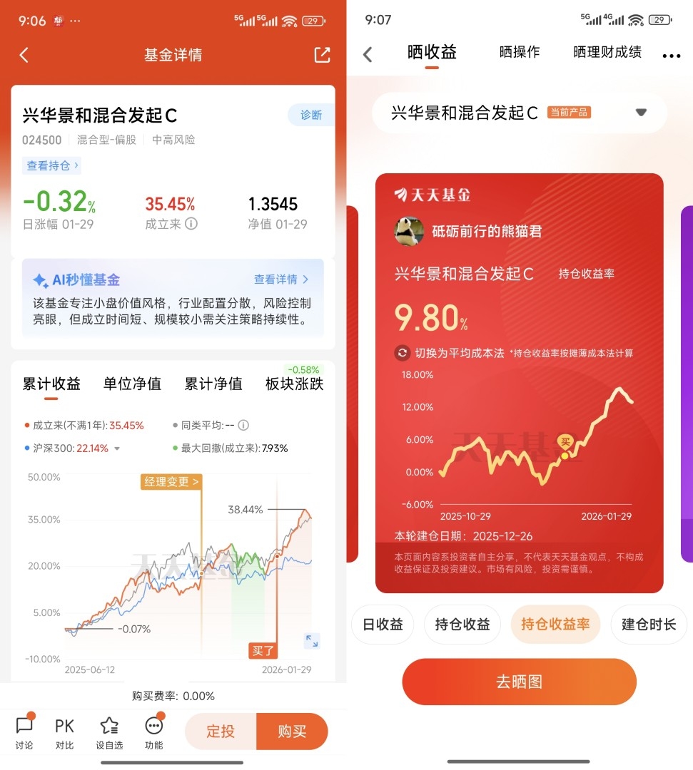 - 费用友好型选手:C类份额免申购费,持有满30天免赎回费,完美适配我的「懒人理财法」。