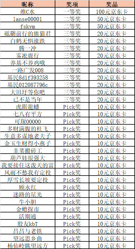为了回馈小伙伴们的热情,现公布本次获奖的用户名单~
