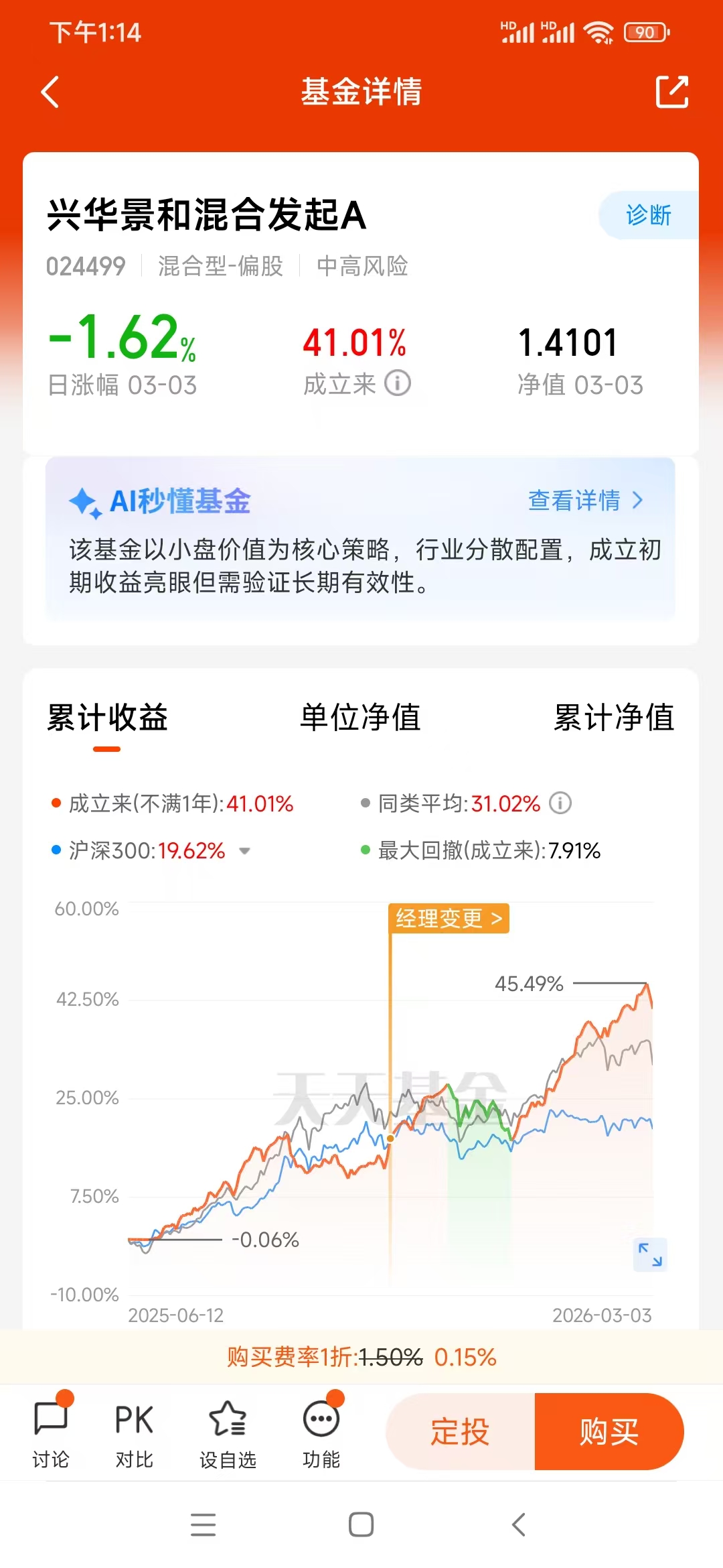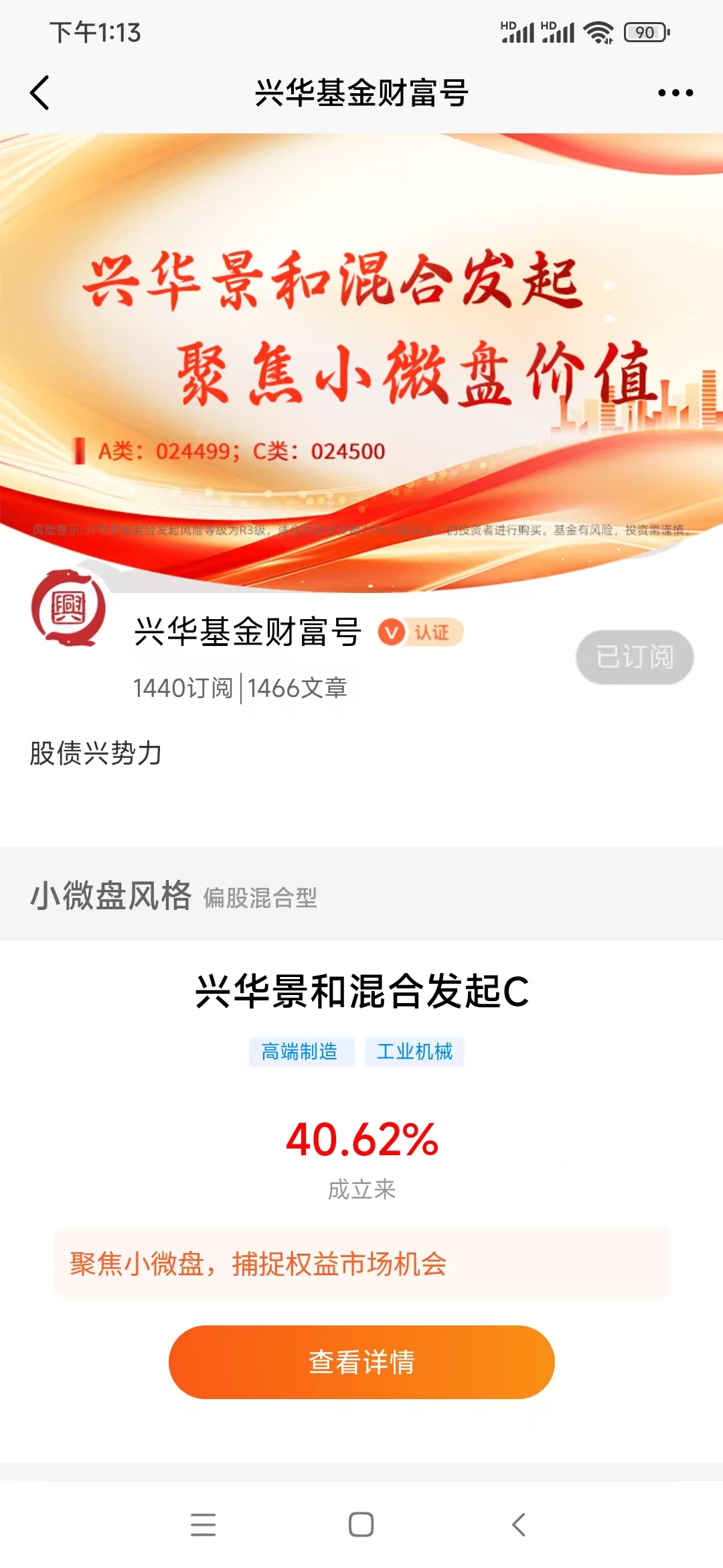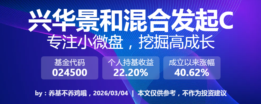 对于普通人而言,投资无需追求复杂操作与短期暴利,找准长期趋势赛道,选中业绩靠谱、策略清晰、费率友好、团队专业的基金,坚持长期持有就能收获理想回报。兴华景和混合发起C(024500)是我小微盘布局的优质选择,过去的持基体验已充分验证其价值,未来我会坚守投资逻辑,不被短期波动干扰,与优质基金同行,在长期布局中实现财富稳健增长。(本文仅供参考,不作为投资建议)@兴华基金
