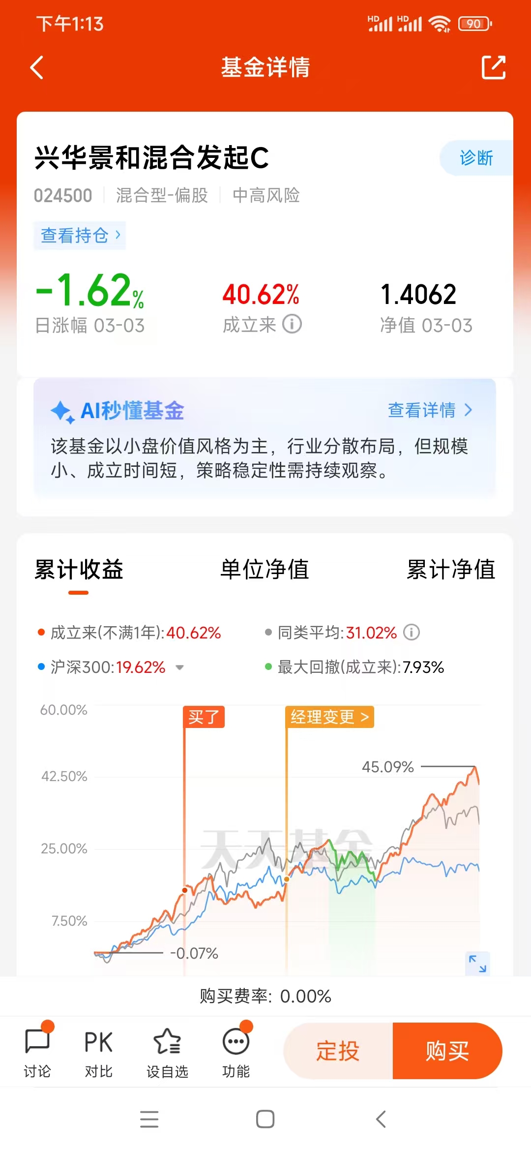 兴华景和混合发起C在2025年6月成立,至今不满一年,很多投资者对新基金有业绩顾虑,但这只基金用实力打破偏见,成立以来涨幅高达40.62%,在同类小微盘主题基金中表现突出。我去年8月入场,恰好踩中产品成长周期,半年多时间斩获22.20%收益。