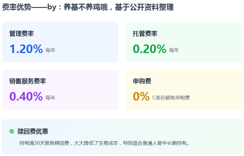 作为上班族,我选基金格外看重费率成本,长期持有下,高费率会持续侵蚀收益。兴华景和混合发起C的费率水平在混合型基金中处于低位,每年管理费率1.20%、托管费率0.20%、销售服务费率0.40%,整体费率压力极小。更友好的是,C类份额无申购费,持有满30天即可免赎回费,无论长期持有还是灵活调整资金,都不会产生额外手续费。这种费率设计完全贴合上班族闲钱投资、灵活操作的需求,不用为费率纠结,能把精力集中在赛道与基金本身的选择上,大幅降低投资决策成本。