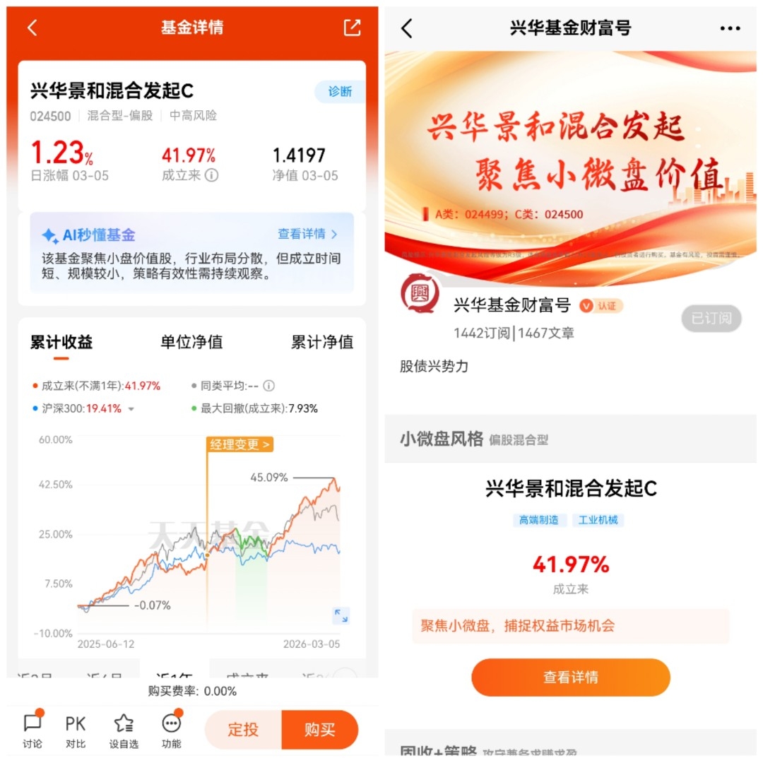#收益见证选择 分享传递价值# $兴华景和混合发起C$ 这些年一路拿着基金走过来,我最大的感受就是,投资这件事从来不是比谁跑得快,而是比谁走得稳、拿得住。刚接触基金的时候,我也和大多数人一样,喜欢追热点、看短期涨跌,一天不打开账户看几遍就心慌,涨了开心,跌了焦虑,甚至忍不住频繁买卖,结果不仅没赚到多少收益,还把心态搞得一团糟。慢慢走过几轮市场周期我才明白,真正的持基,拼的不是择时的运气,而是认知、耐心和对自己风险承受能力的清醒认知。我现在的持基心得,总结下来就是不追高、不盲从、不频繁操作、不单一押注,把投资当成一场长跑,而不是一次短跑冲刺。我不再盯着每天的净值波动纠结,而是更看重基金经理的投资逻辑、持仓行业的长期逻辑,以及自己组合的平衡性。我会根据自己的收入、家庭情况、能承受的回撤幅度来搭配基金,不会因为别人说某只基金好就盲目跟风,也不会因为市场短期调整就否定自己的长期布局。对我来说,持基的核心是守住初心,赚自己看得懂的钱,把时间交给优质资产,而不是把情绪交给市场波动。遇到震荡行情,我会先冷静分析是市场情绪导致的短期波动,还是行业基本面真的出现了问题,如果是前者,我反而会坚持定投或者小幅加仓,摊薄成本;如果是后者,我才会考虑适度调整,绝不因为恐慌而盲目割肉。这些年的经验让我确信,只要选对了方向、拿住了优质基金,时间一定会给我们应有的回报,投资最可怕的不是市场下跌,而是在黎明前放弃,在上涨时追高,在震荡中迷失。