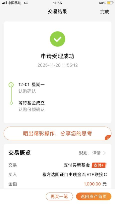 当下的震荡环境下,我也再次调整思路,先在自由现金流里等下,等后面的行情来。今天先上车$易方达国证自由现金流ETF联接C(OTCFUND|024567)$,1000元,后面会陆续增加。