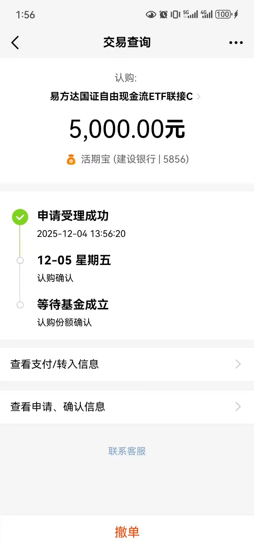 至于为啥关注新基金,是因为这个基金募集完成、建仓完毕之后刚好能躲过今年的横盘调整,时间点刚好,而且在此期间,它会有活期存款的基础收益,不会受到股市波动的影响,所以今天海哥考虑后市风险把减仓止盈的资金转过来一些,不多也就5k第一次,后面打算专门布局这个产品用它避险。