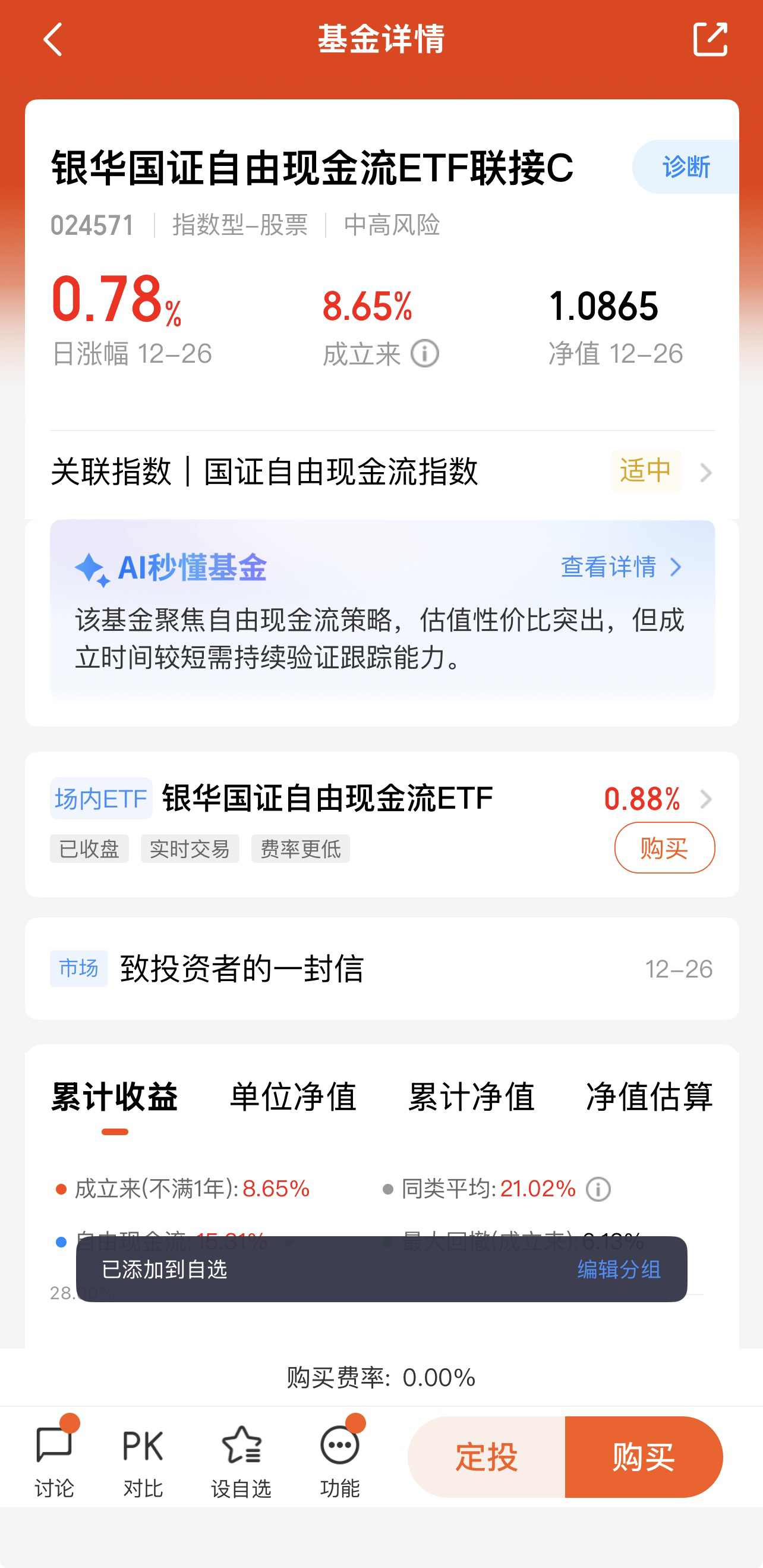 该基金设置C类份额(代码024571),相较于A类份额,具备“销售服务费替代申购费”的特点,显著降低了投资者的交易成本。对于短期持有或小额分散投资的投资者而言,无需承担高额申购费,仅需支付较低的年度销售服务费,极大提升了投资灵活性。