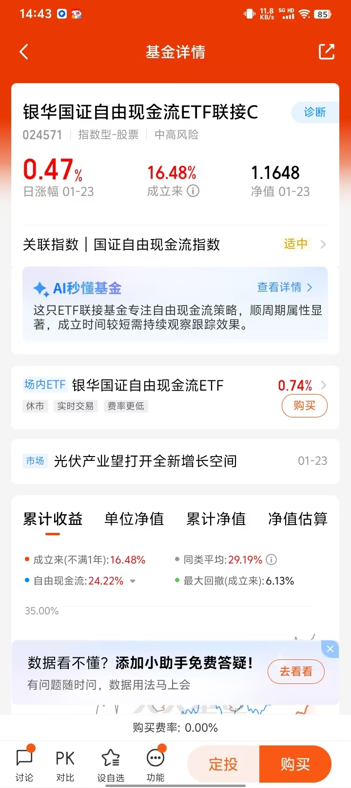 $银华国证自由现金流ETF联接C(OTCFUND|024571)$
