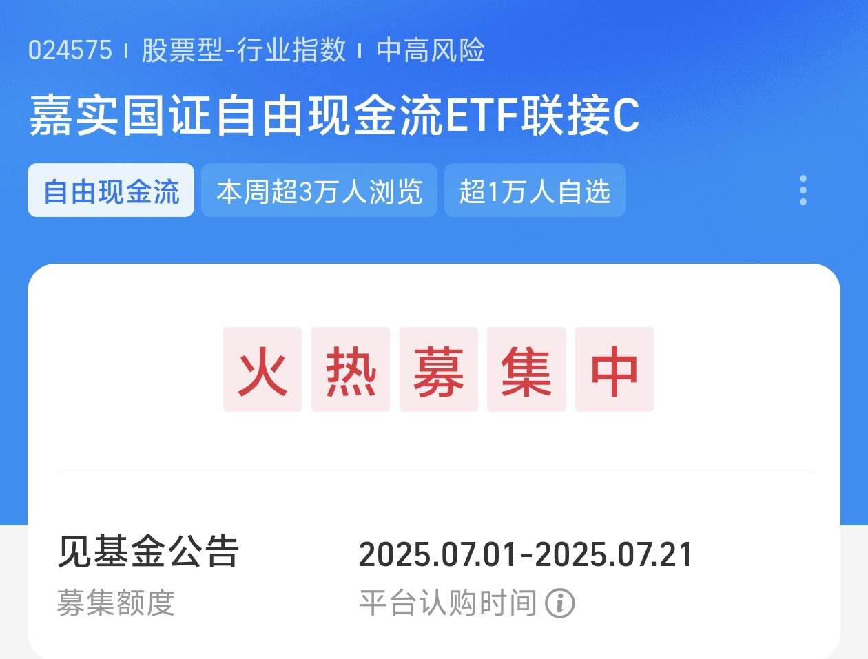 好机会呀,小伙伴们。目前市场行情震荡,我也是发现了一个新的领域——自由现金流ETF。目前该板块也在募集中,新发基金单位净值低,投资性价比高,也迎来了配置窗口期。