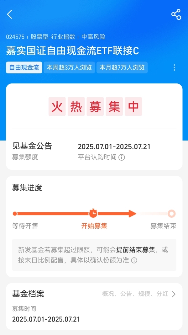 $嘉实国证自由现金流ETF联接C$ 关键是现在还在募集期,相当于能以初始净值上车。我已经打算重点关注,等开放后先布局一笔,毕竟这种既能跟踪强势指数,又有实力经理加持的机会,可不想错过。
