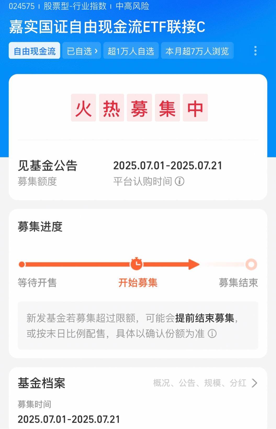 今天的大盘走势太令人惊喜了!高开高走,三大指数集体飘红,沪指更是一路强势上行,成功突破3535点位 ,这行情爆发得太及时了!在这样的好行情下,发现$嘉实国证自由现金流ETF联接C$ 目前正处于募集阶段,还是不错的,符合我的稳健要求,该基金紧密跟踪国证自由现金流指数,优中选优,聚焦于自由现金流充裕的优质企业,行业配置既合理又均衡,既能有效分散投资风险,又能捕捉更多投资机遇,可谓一举两得。