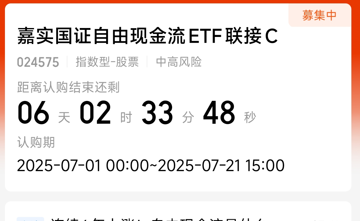 午盘结束!今天这个大盘也是回落很多了呀!三大指数涨跌不一,今天4600家都是下跌的,资金对比上一个交易日放量一波!今天这个在募集$$嘉实国证自由现金流ETF联接C$ 上车一波,主要分布行业,汽车,石化,还有电力方面呢,从该指数来看这个现金流指数已经连续9年都是正收益了,比较稳定,等到后面募集成功的时候我也打算继续来布局一波!看看他的这个历史数据显示,2014-2024年十一年中有9年实现上涨,2019-2024年连续6年正收益,近5年最大回撤小于沪深300指数,波动相对较小。