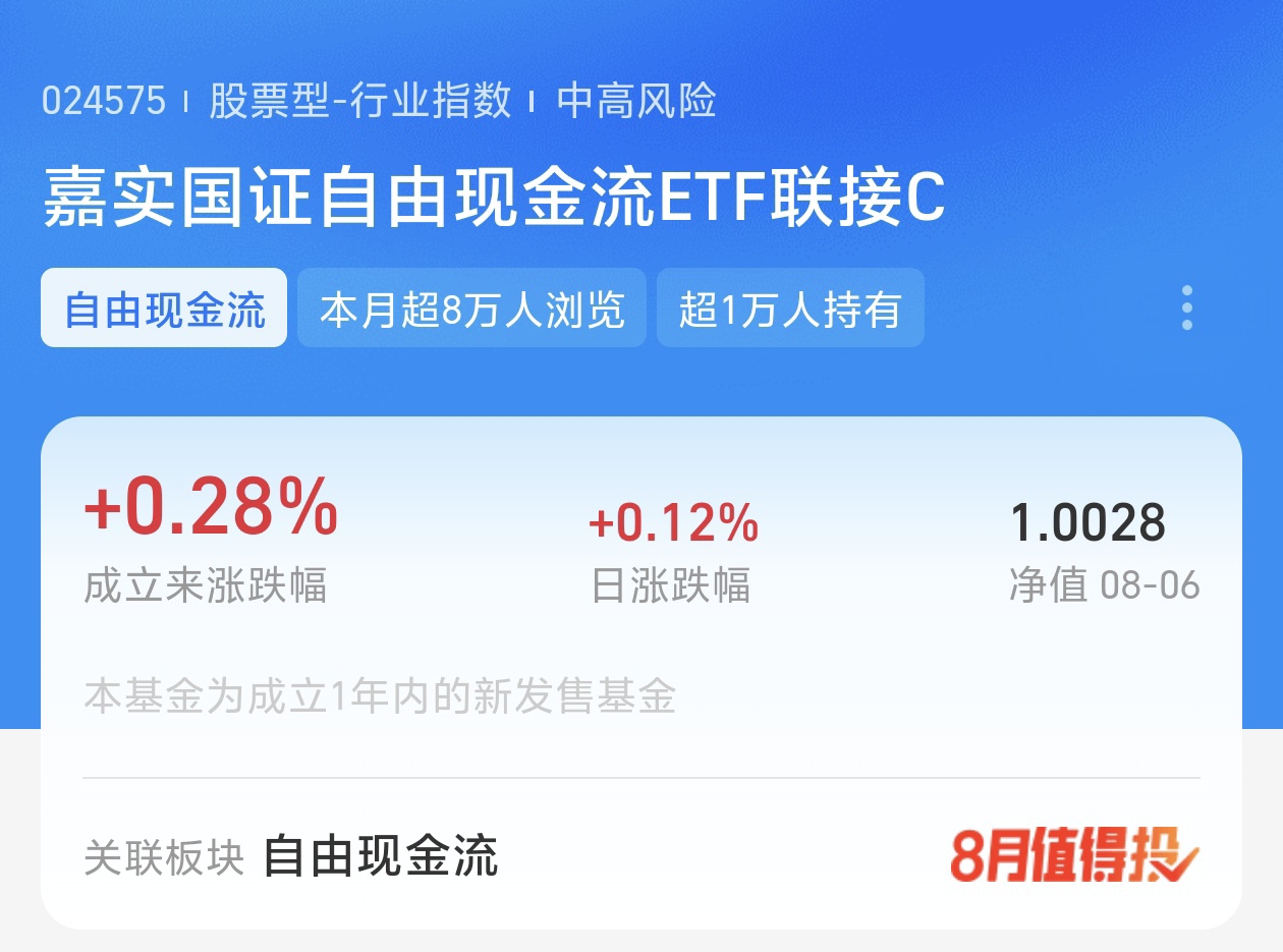 今天A股市场横盘震荡,三大指数涨跌不一。目前我也发现了一个新的板块——自由现金流。基金新成立不久,单位净值低,投资性价比高。