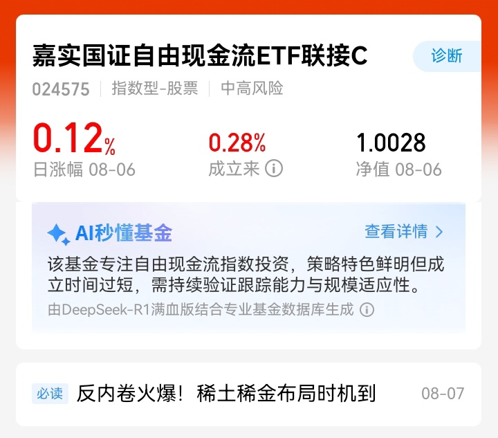 我还是很看好嘉实国证自由现金流ETF联接C接下来的表现!毕竟它过去的表现实在亮眼