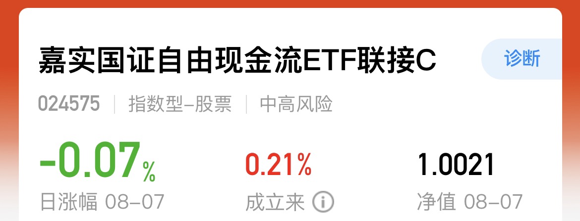 我发现自由现金流还是比较稳定的,比如今天A股和港股都跌了,但是它逆风上涨,这个稳定和韧性挺优秀的,它稳定的季度分红+较高的股息在震荡行情中也收获了稳稳的幸福。关注的$嘉实国证自由现金流ETF联接C$ 已经上市16天了,成立以来涨幅0.21%,整体波动较低,收益稳定。它可以自己调仓比大部分主动型基金表现要亮眼。是巴某特都看好的策略指数。从估值角度分析,它还处于价格探索期,后面补涨空间也还有。