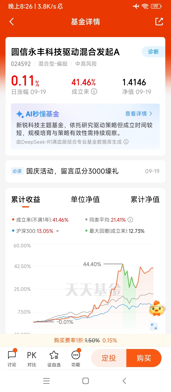 这次旅行让我意识到,科技领域蕴含着巨大的投资机会。科技创新是推动社会进步的核心动力,随着5G、人工智能、大数据等技术的不断发展,科技行业将迎来更加广阔的发展空间。而在众多的科技基金中,圆信永丰科技驱动混合发起A(024592)引起了我的关注。