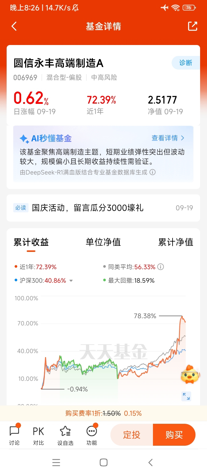 回顾今年前三个季度的投资,我有收获也有反思。在接下来的时间里,我计划重点配置圆信永丰科技驱动混合发起A。科技行业的发展具有长期的确定性,尽管短期内可能会面临市场波动,但从长远来看,科技创新将持续推动行业的增长。我相信,通过投资这只基金,能够分享科技行业发展带来的红利。