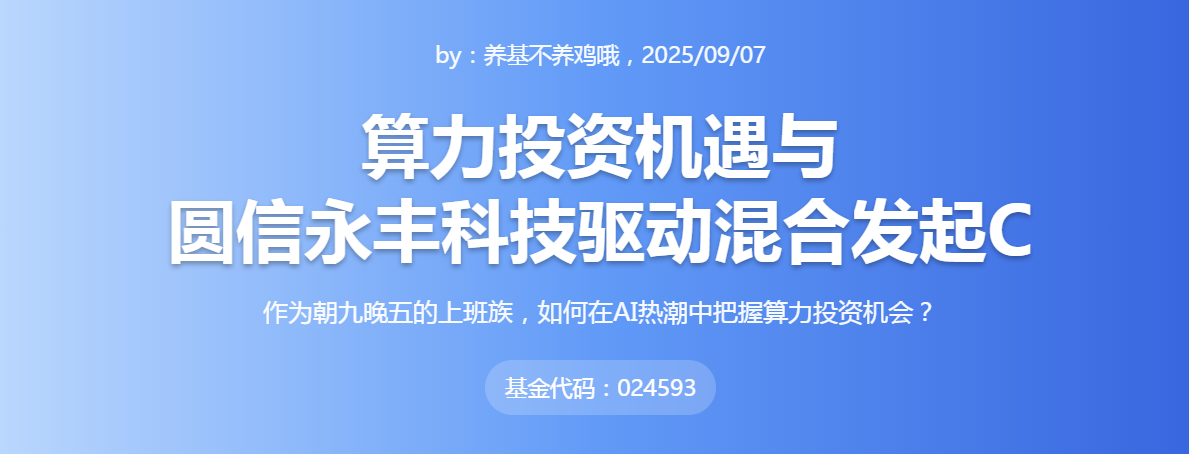 圆信永丰科技驱动混合发起C(024593)刚好踩中这个风口,策略、费率、团队又都适配上班族需求。当然投资有风险,但长期看,投算力就是投AI基建、投国产科技突围,对我们普通人来说,这既是抓机会,也是跟着行业一起成长。现在上车,真不晚。@圆信永丰基金 @天天精华君 @天天基金创作者中心