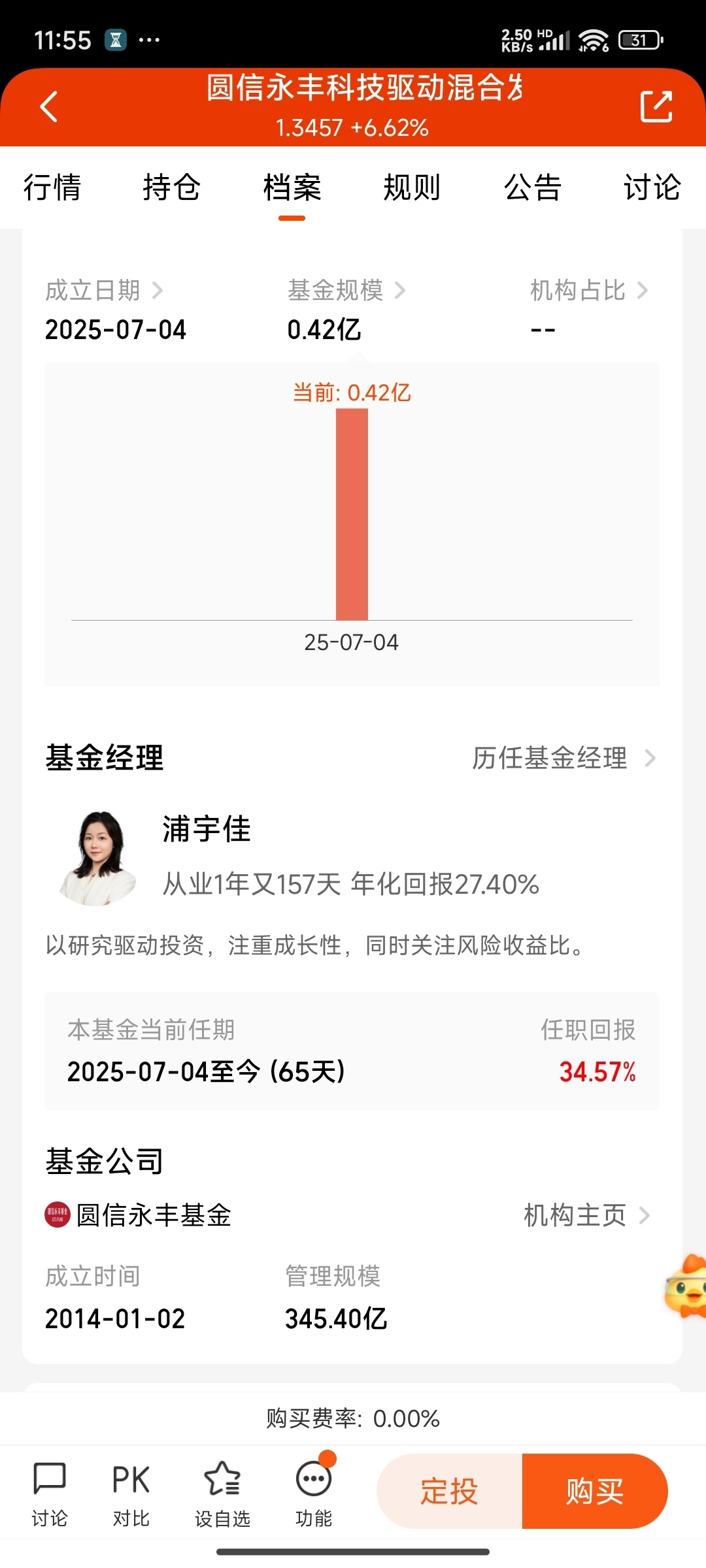 偶然刷到这只成立仅63天就暴涨26%的基——圆信永丰科技驱动混合C(024593),第一反应是怀疑数据出错。但深入了解后发现,它的掌舵人浦宇佳(名字划重点)竟是复旦凝聚态物理硕士出身!一个研究量子力学的学霸转型做科技基经理,瞬间勾起我的兴趣。