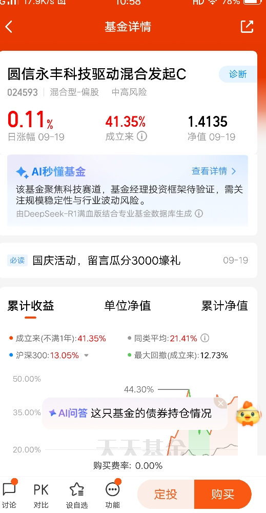 今年人工智能赛道表现不错,今年与科技相关的板块都有一定的涨幅,而人工智能作为科技行业比较重要的一环,会影响很多行业。很多行业有了人工智能的助力,可以诞生很多科技新品,以满足人们的需求。未来,随着人工智能的技术再次升级,我们的科技产品也会更多,而且国家现在也专门在人工智能这一领域下大力气重点发展,所以这一赛道未来潜力值得期待。$圆信永丰科技驱动混合发起C$ @圆信永丰基金