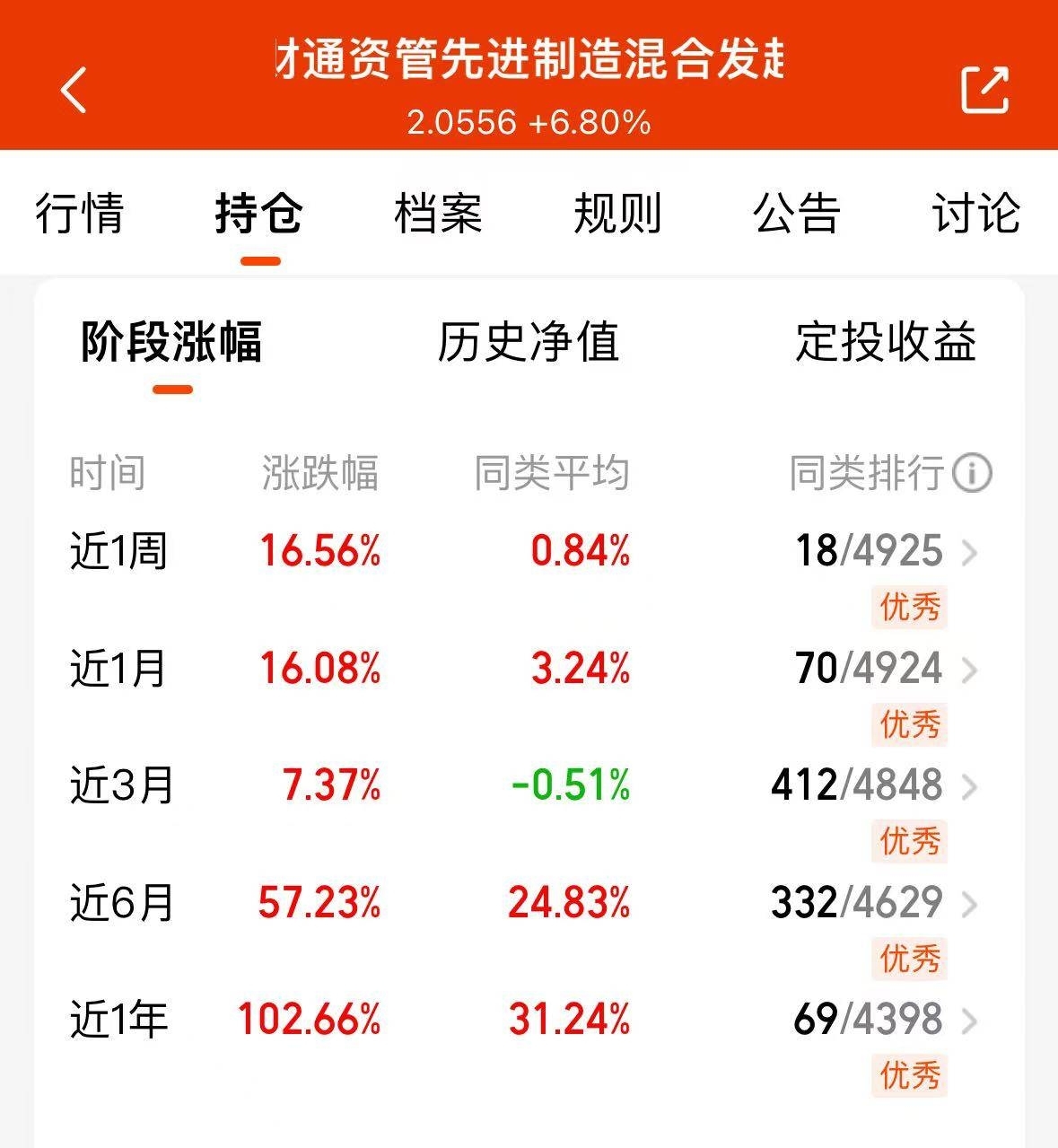 好多人都在问机器人基金怎么选,我首推财通资管先进制造,今天大涨6.80%,近一年