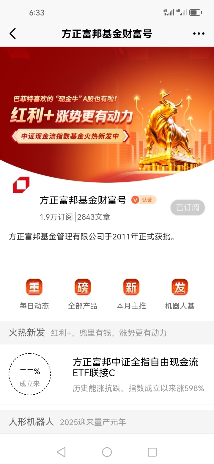 综上所述,我关注了方正富邦中证全指自由现金流ETF联接(A类:024602,C类:024603),因为吴昊与于润泽这两位基金经理的投资经验相当丰富。@方正富邦基金