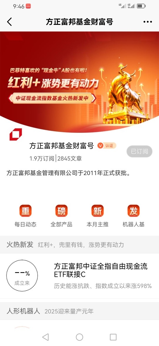 因此我重点关注了方正富邦中证全指自由现金流ETF联接(A类:024602,C类:024603),因为方正富邦基金是投资者的好伙伴,它在投资理财方面相当专业。而且作为方正富邦基金的铁粉与方正富邦基金旗下多款基金产品的持有人,方正富邦基金的表现从来没有让我感到失望过,所以我相信该基金在未来的表现一定会大放异彩的。@方正富邦基金
