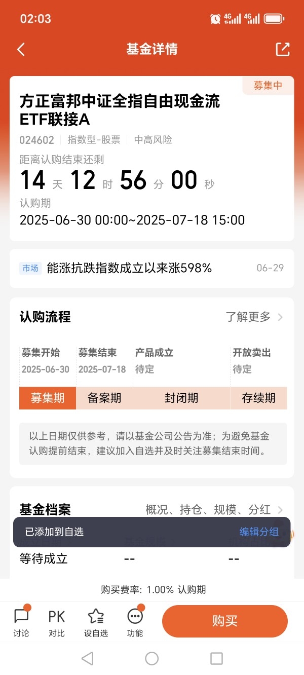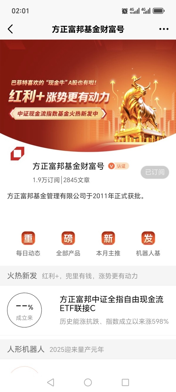 最后,我关注了方正富邦中证全指自由现金流ETF联接(A类代码:024602,C类代码:024603),因为方正富邦基金是老品牌,值得信赖。@方正富邦基金